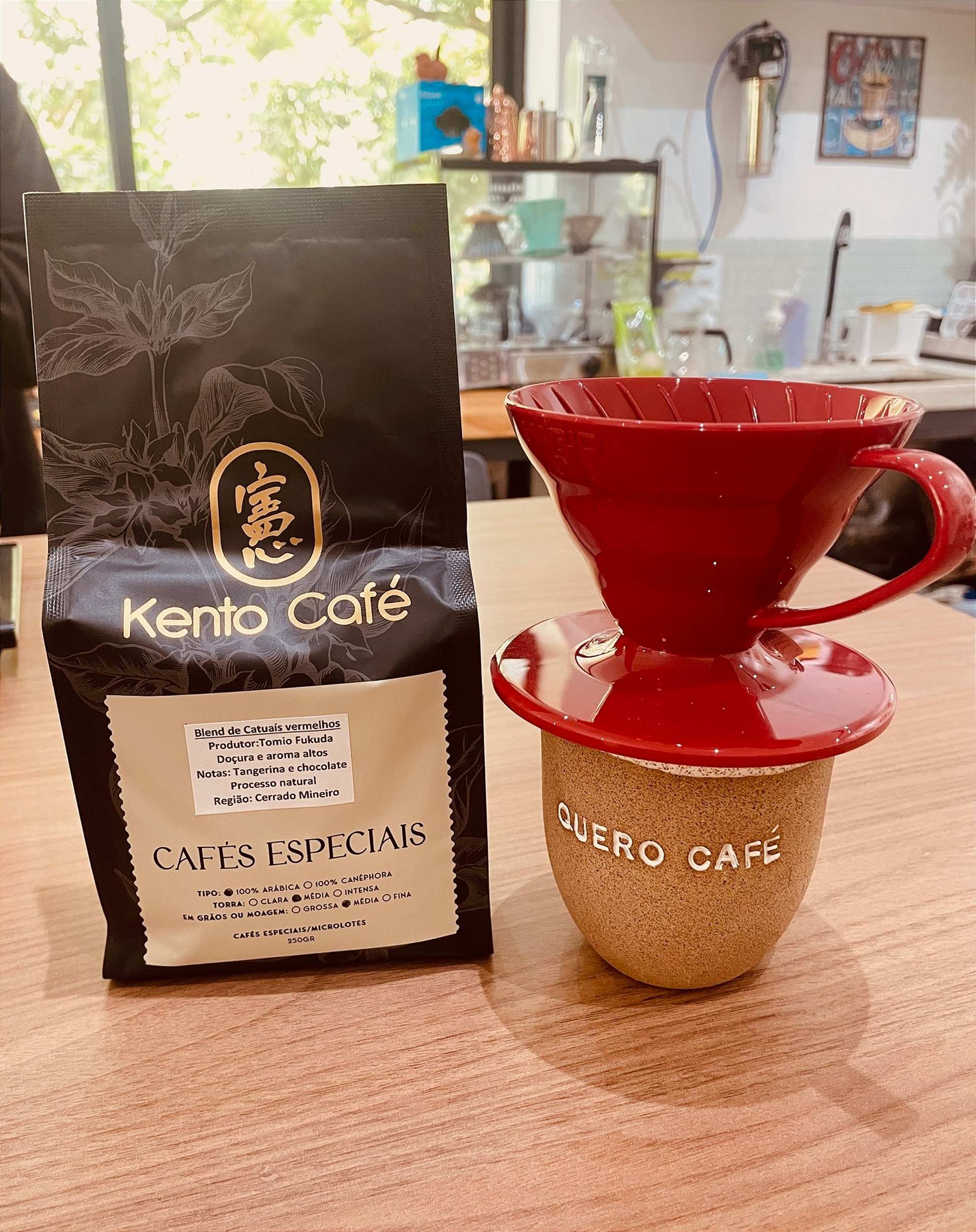 Cafeteria e loja de utensílios e insumos para preparo de cafés para Coffeelovers. Loja de Pacotes de cafés especiais, de torra clara, de própria torrefação do Kento Café.